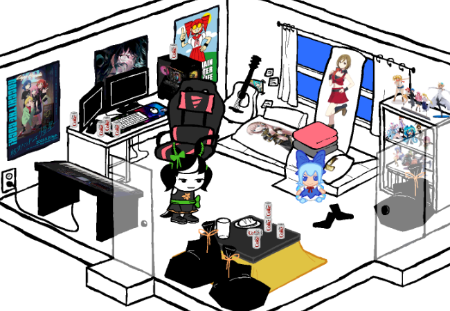 Normally many people would consider the condition of this living space to be subpar, but you know better. Your SISTER is always busy with her work, and the attention of so many adoring fans that she barely has time to clean up after herself! You take pride in helping her in any way you can.